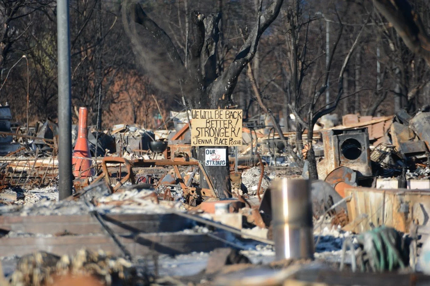 A sign of hope attached to a tree for residents of the Coffey Park neighborhood in Santa Rosa, Calif. “We will be back better! Stronger! Jenna Place Posse.” Devastating fires ravaged parts of the North Bay Area late-Sept. into early-Oct. Contracted crews from the U.S. Army Corps of Engineers South Pacific Division are providing debris cleanup for those devastated by the fires. (U.S. Army photo by Edward Coffey)